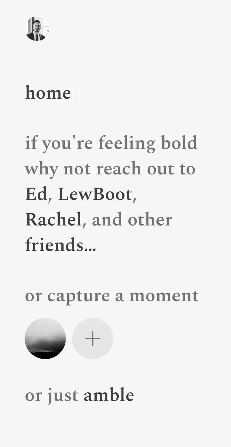 we created a place for you to share small moments with the people that you love, so take your time and be mindful, on android and iOS